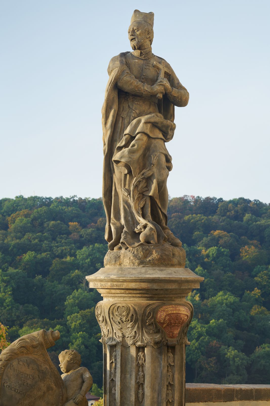 Sochu sv. Filipa z Neri, stojící dnes na kanelovaném sloupovém podstavci na vrcholu Nových zámeckých schodů, zhotovila mezi lety 1714 a 1715 pražská sochařská dílna Jana Brokoffa, na objednávku hraběte Františka Halfrída Voračického z Paběnic. Objednavatele připomíná drobná znaková kartuše z narůžovělého sliveneckého vápence, vsazená do hlavice vysokého kanelovaného soklu, s nápisem: „FRANC: HELFRIDUS WORACZICZKY S. R. I. COMES ET DOMINUS DE PABIENITZ S: C: M CAMMERARIUS ET CONSILIARIUS FIERI FECIT ANNO 1715“. Dílo provedl nejvýznamnější člen brokoffovského ateliéru Ferdinand Maxmilián Brokoff, snad s účastí svého staršího bratra Michaela Jana Josefa, signatura na římse válcového soklu nicméně připomíná otce Brokoffa, Jana. Pískovcová plastika až do roku 1764 stávala při Arcibiskupském paláci, původně přitom znázorňovala katolického mučedníka, blahoslaveného Jana Sarkandera, kněze zabitého v době třicetileté války. Po přesunutí na současné místo byla doplněna doprovodnou kartuší přidržovanou dvojicí putti, opatřenou na obou stranách latinskými nápisy velebícími sv. Filipa z Neri, zakladatele řádu oratoriánů. Restaurováno v roce 2019.