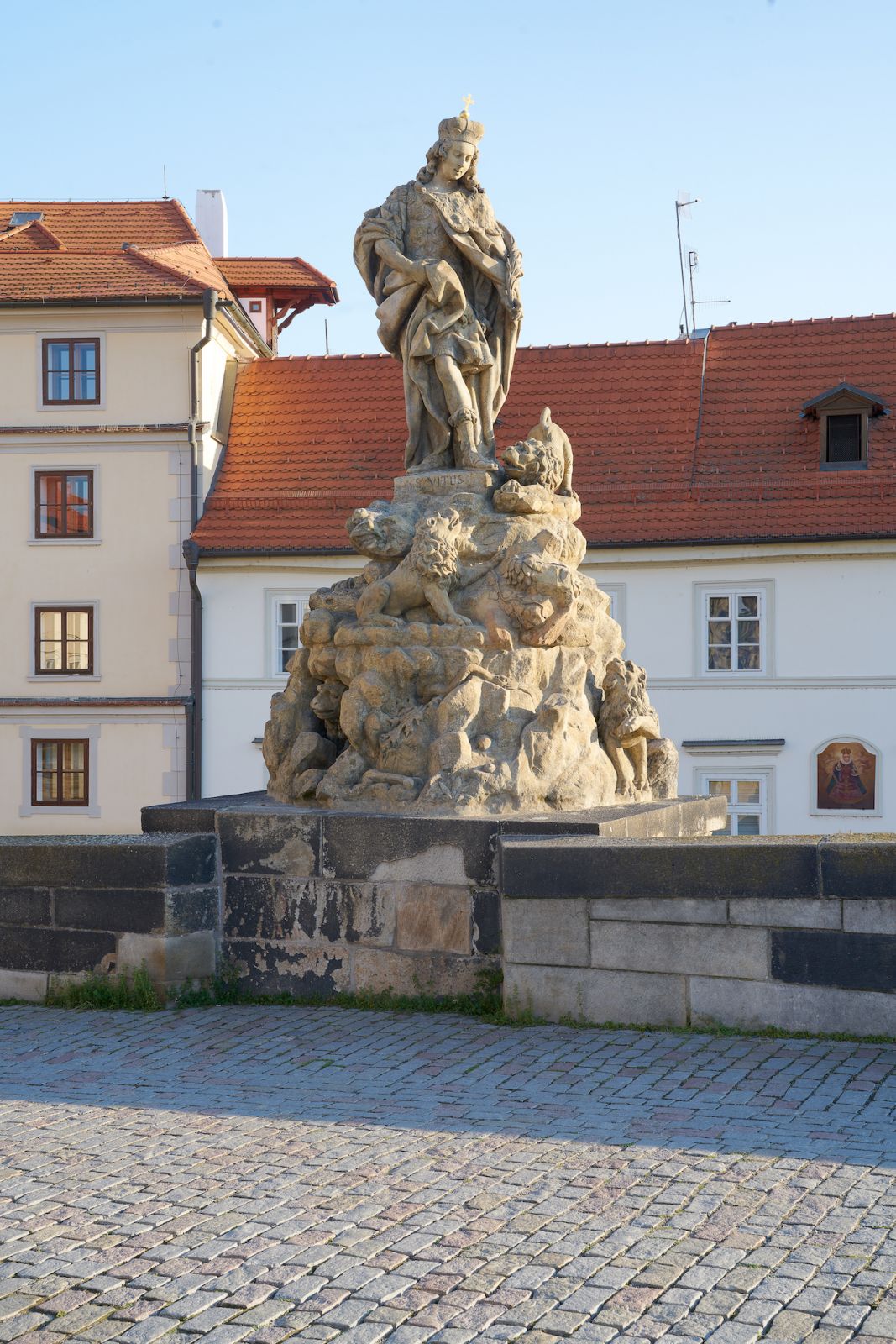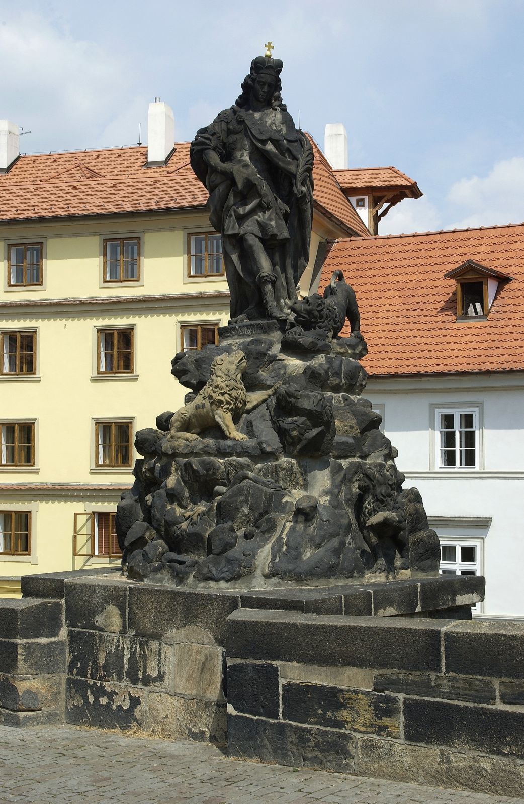 Sousoší se sv. Vítem provedl roku 1714 Ferdinand Maxmilián Brokoff na objednávku děkana vyšehradské kapituly Matěje Vojtěcha z Löwenmachtu. Mladistvého sicilského mučedníka, oděného v brnění starořímského vojáka s bohatě řaseným pláštěm a knížecí čapkou na hlavě, obklopuje na umělém skalisku smečka zázračně zkrotlých lvů, kterým měl posloužit za kořist. Jeden z nich, tzv, český lev, dokonce líže světcovu nohu. Socha je signována na jednom z výstupků skaliska: „OPUS IOAN: BROKOFF“. Sousoší bylo restaurováno nejmodernějším technologickým postupem pomocí laseru v roce 2019.