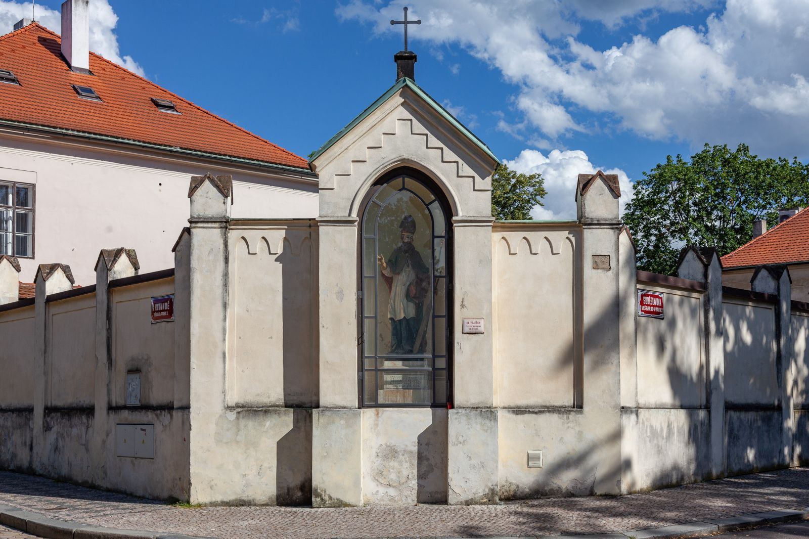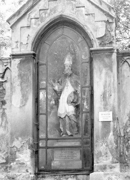 Dřevěná polychromovaná plastika sv. Vojtěcha, která se nachází v zasklené nice na nároží neogotické ohrady Starého děkanství, je novodobou kopií díla neznámého řezbáře. Originál dřevořezby, pocházejícího nejspíše ze druhé čtvrtiny 18. století, je dnes uložen v boční lodi chrámu sv. Petra a Pavla, kam byl umístěn po osazení a vysvěcení kopie v roce 1997.