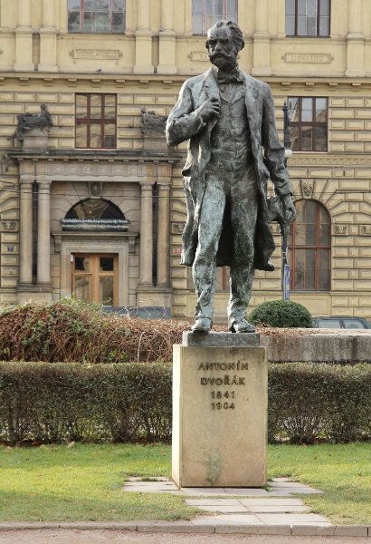 Pomník s bronzovou postavou hudebního skladatele Antonína Dvořáka je dílem Josefa a Jána Wagnerových. Ján Wagner zhotovil po roce 1988 podle staršího modelu svého zesnulého otce. Před Rudolfinem byl odhalen dne 4. června 2000.