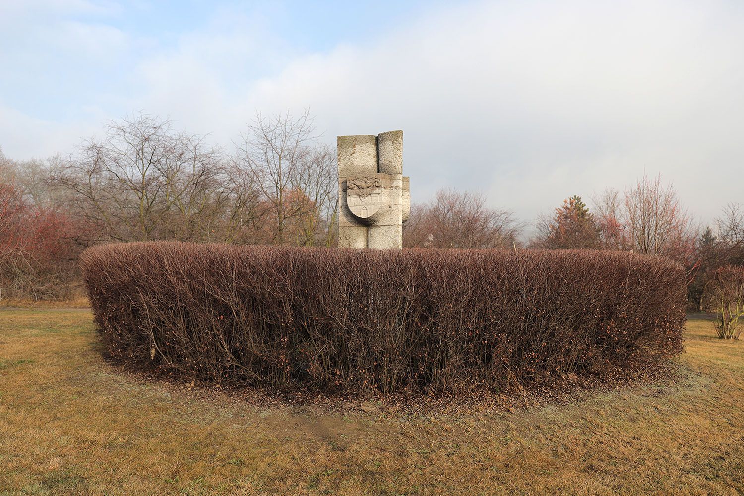 Pylon s městskými znaky Prahy, Kutné Hory a Kolína.