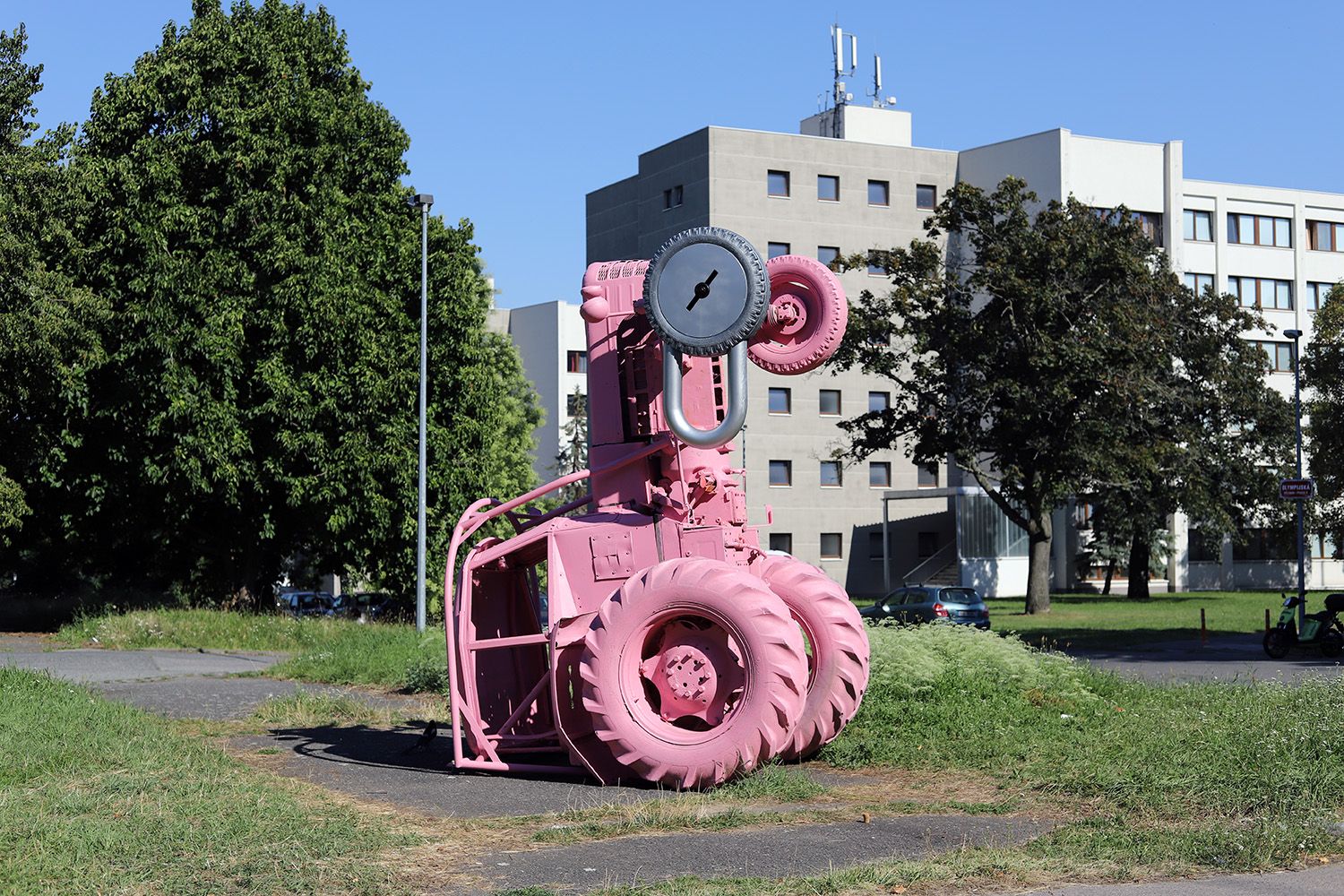 Na růžovo nabarvený traktor Zetor 40 je umístěn poblíž místa, kde stál pivní stánek U Johna de Billa, který je zvěčněn v písni punkové skupiny Visací zámek Stánek. Visací zámek je zároveň ztvárněn i z jednoho kola traktoru. To připomíná první koncert skupiny, ve strahovském klubu 007 v roce 1982. První Punkový pomník vznikl z darů skupiny Visací zámek, Davida Černého a fanoušků.
