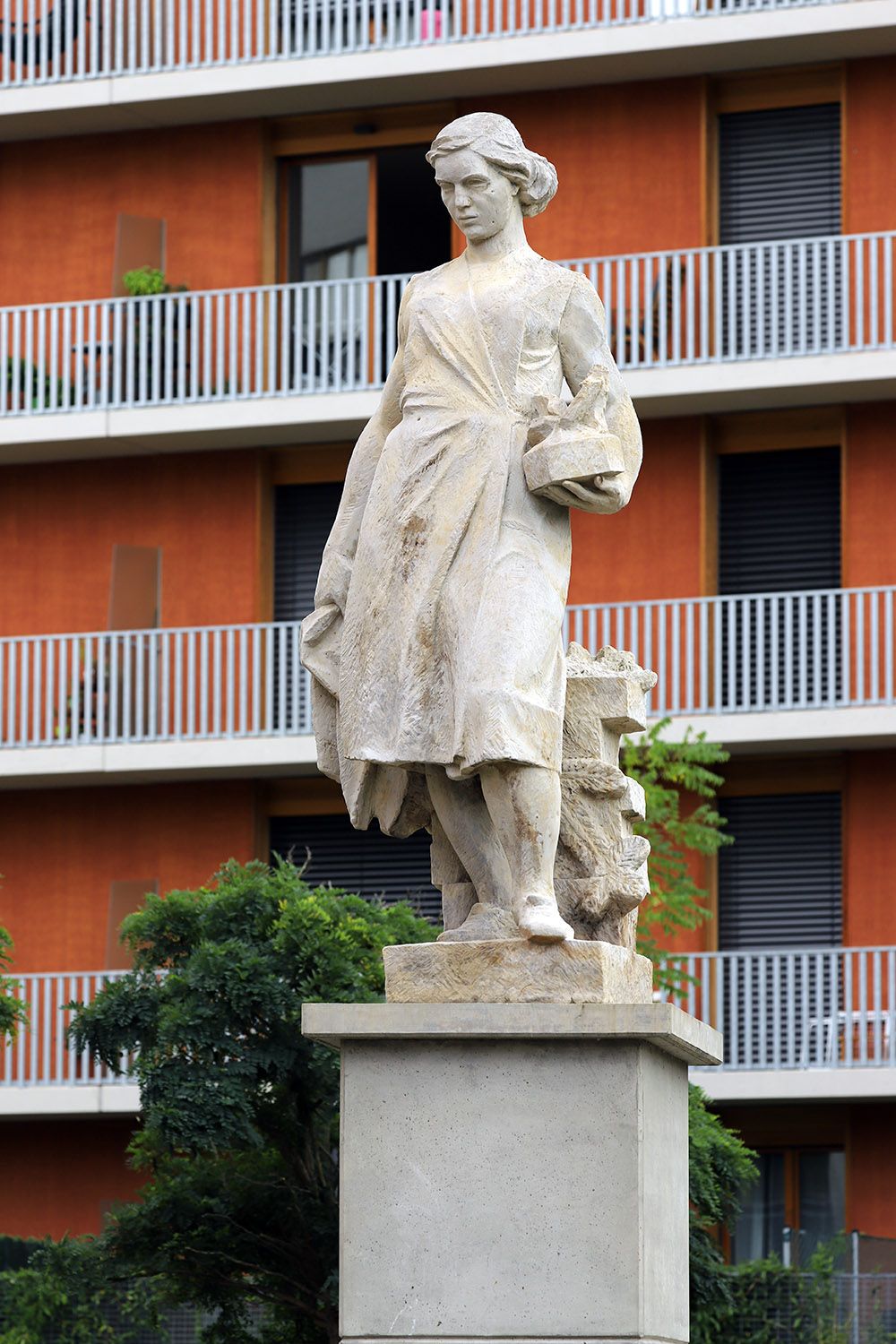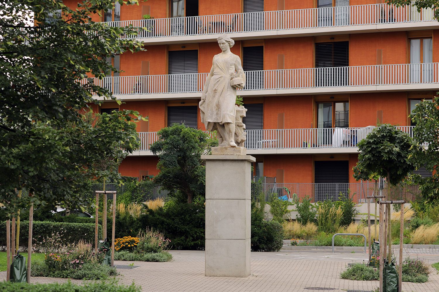Socha byla původně umístěna u vstupu do objektu čokoládoven Orion.