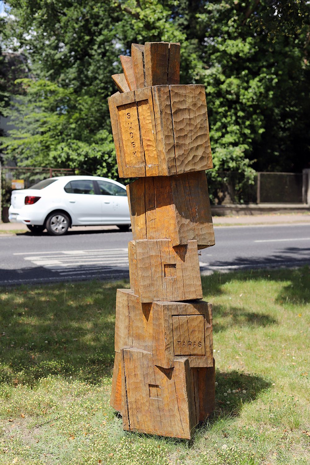 Dřevěná socha vznikla v rámci III. ročníku projektu Sochání pro Hedviku a je dedikována Josefu Sudkovi a Tarasi Kuščynskému.