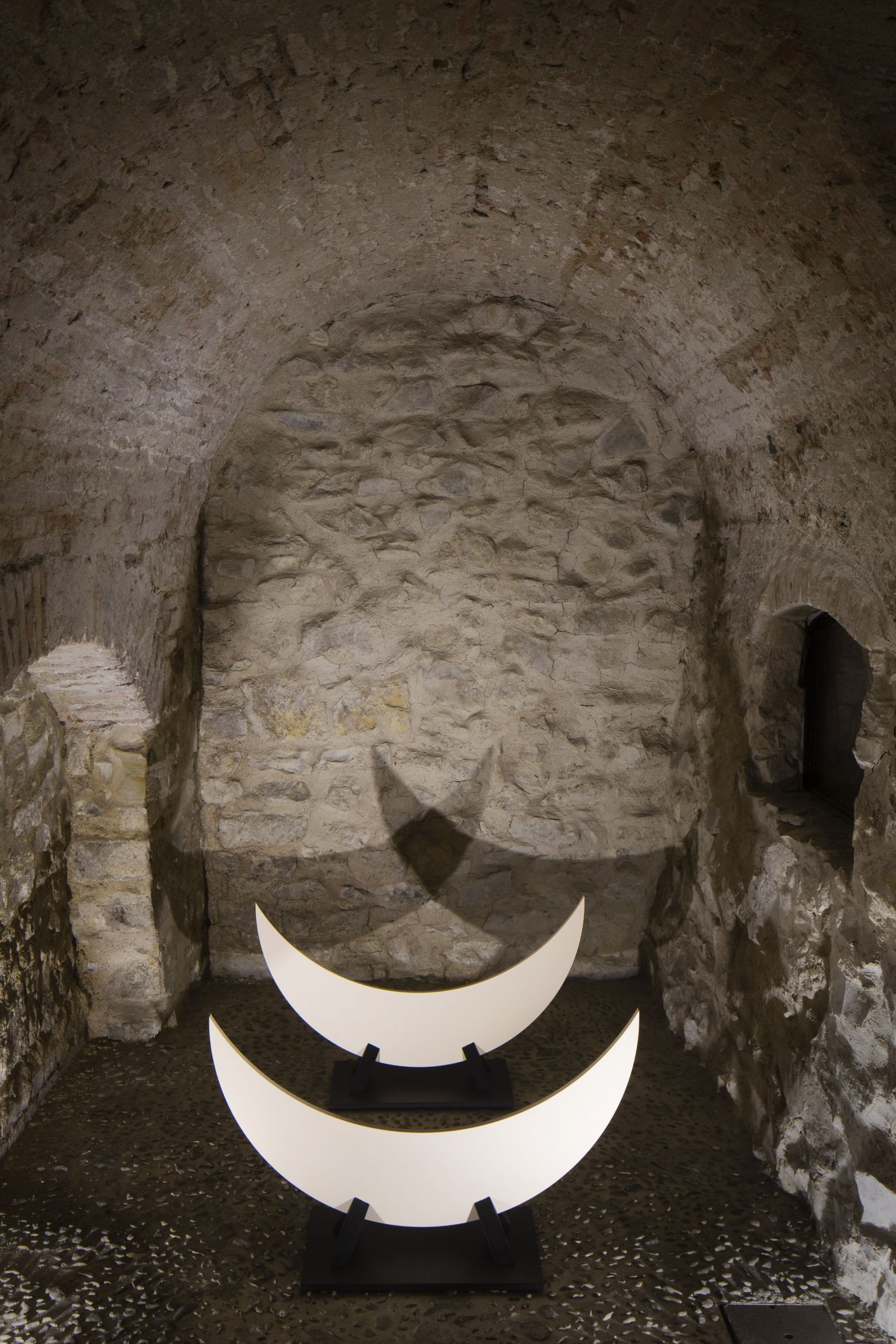 Výstava světelných uměleckých intervencí ve sklepení Domu U Kamenného zvonu volně navázala na úspěšnou sérii tanečních světelných a hudebních performance, které proběhly v létě 2020.