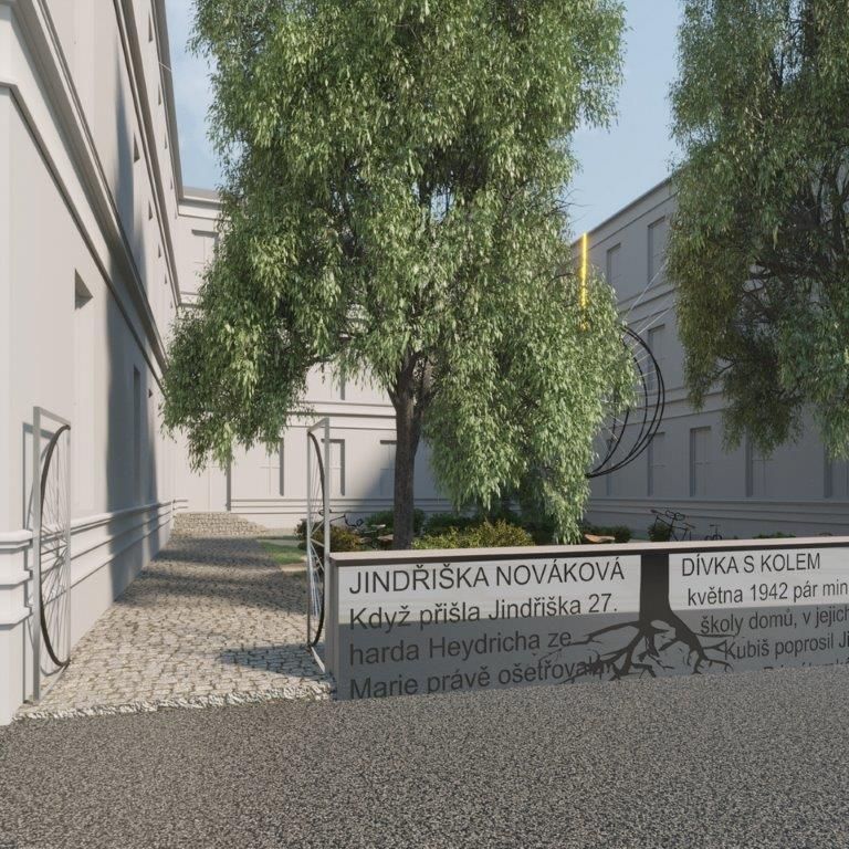 Praha 8 vybrala vítěze umělecko – výtvarné soutěže, ze které vzešel návrh na nové umělecké dílo Dívka s kolem. Libeňská škola byla pro umístění pomníku vybrána proto, že ji mladá odbojářka navštěvovala jako žačka. Autor vítězného návrhu Lukáš Vágner vycházel dle svých slov z dobových pramenů historie dívky s kolem, jakým způsobem se to stalo. „Má to několik rovin. Jedna z rovin je, že jsem sám aktivním cyklistou, takže je pro mě cyklistika velice blízký element a to, jak odvážně se ta dívka zachovala, jakým způsobem to kolo bylo zničené, takže ti nacisté tu věc nikdy nenašli, to byl velice silný moment," řekl Lukáš Vágner,Na instalaci uměleckého díla, které má připomínat památku Jindřišky Novákové, bude navazovat také revitalizace prostranství před základní školou Bohumila Hrabala. V místě školního hřiště se obj eví další umělecké dílo, které navrhnou sami školáci v soutěži.